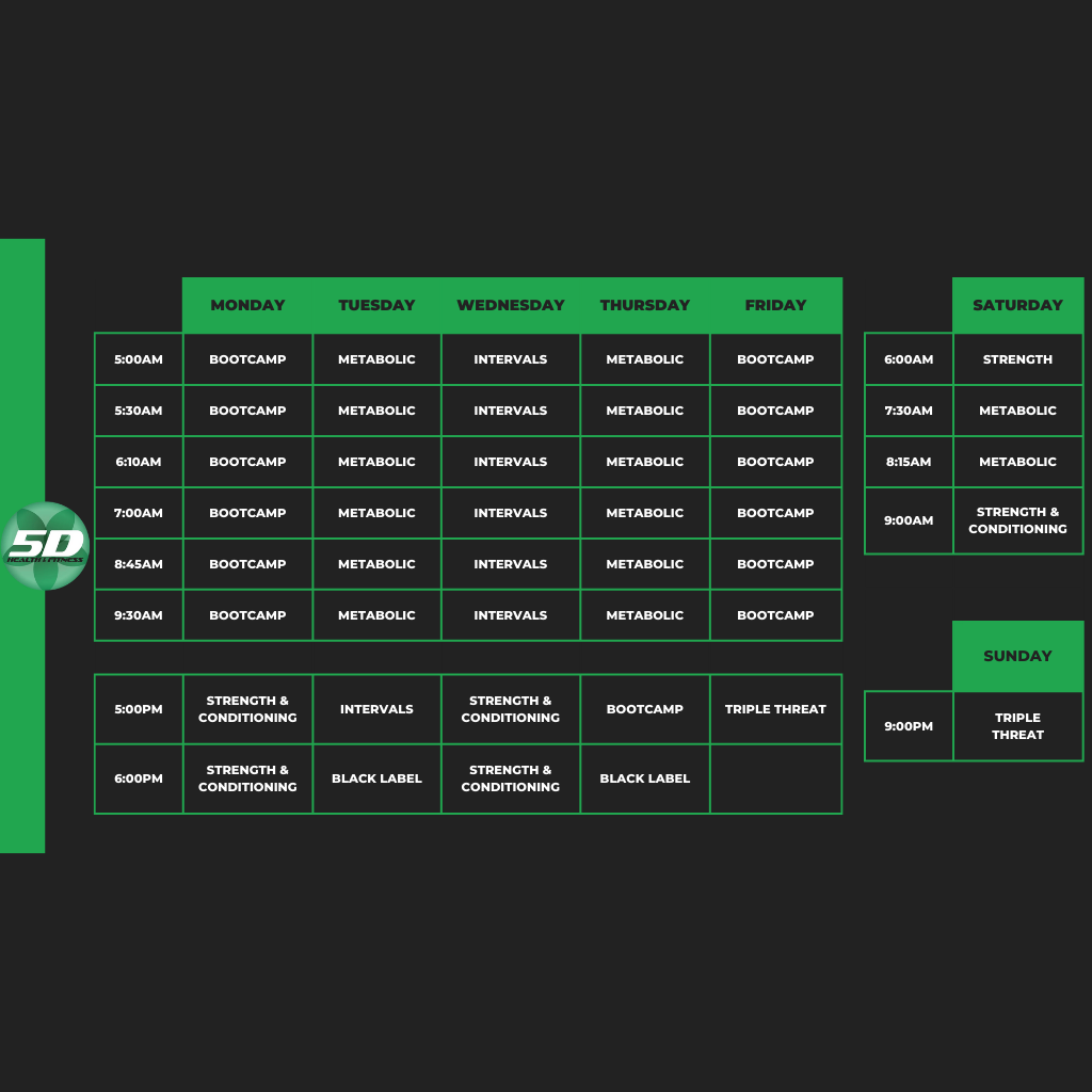 - Triple Threat - We combine elements from bootcamp, intervals and core to create this unique full body endurance class (45 Minutes)